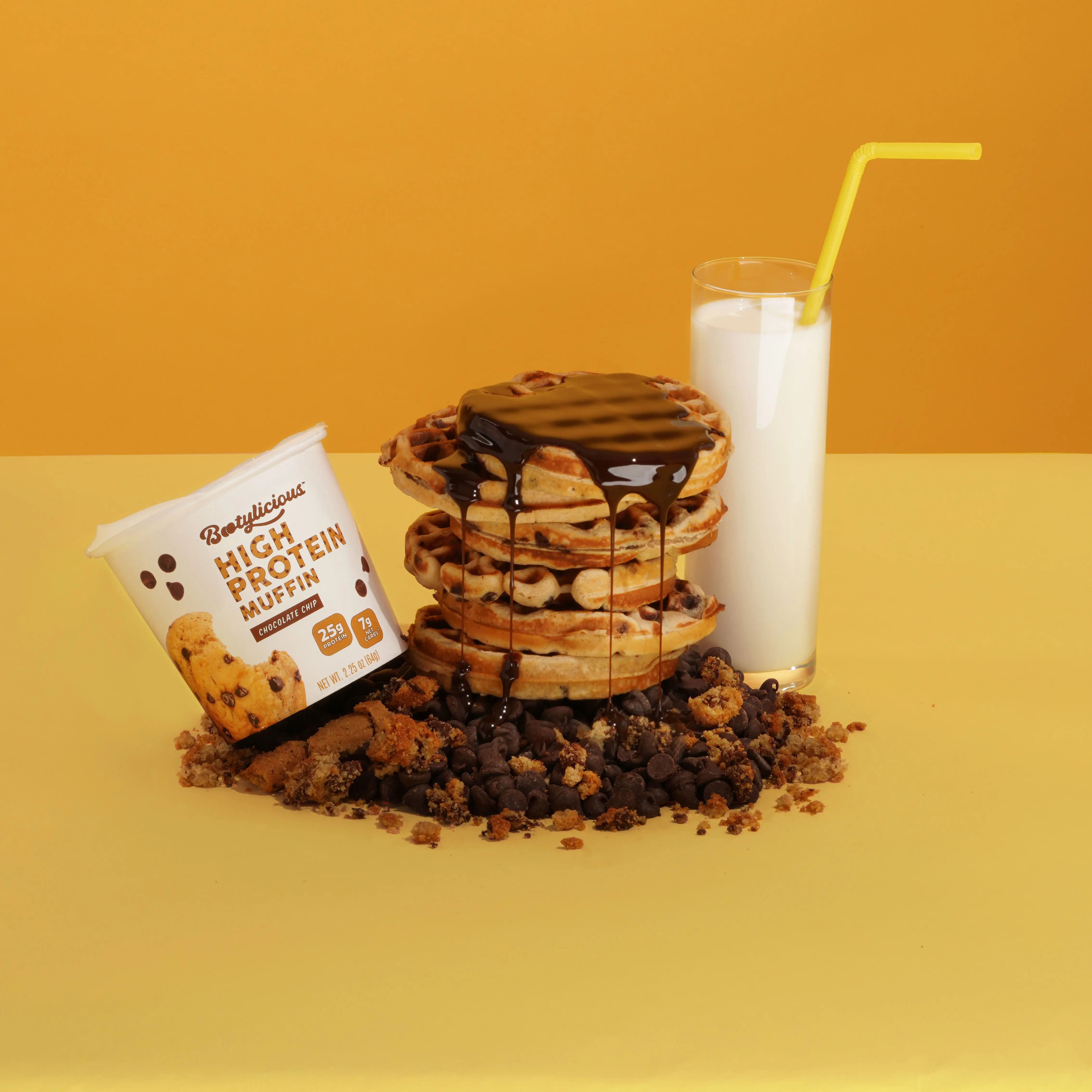 HIGH-PROTEIN: Each muffin is packed with 25g of protein using our 5 ingredient protein blend to ease digestion. The blend includes micellar casein (milk), wheat protein isolate, collagen peptides, pea protein concentrate, and whole egg containing all 9 essential amino acids.